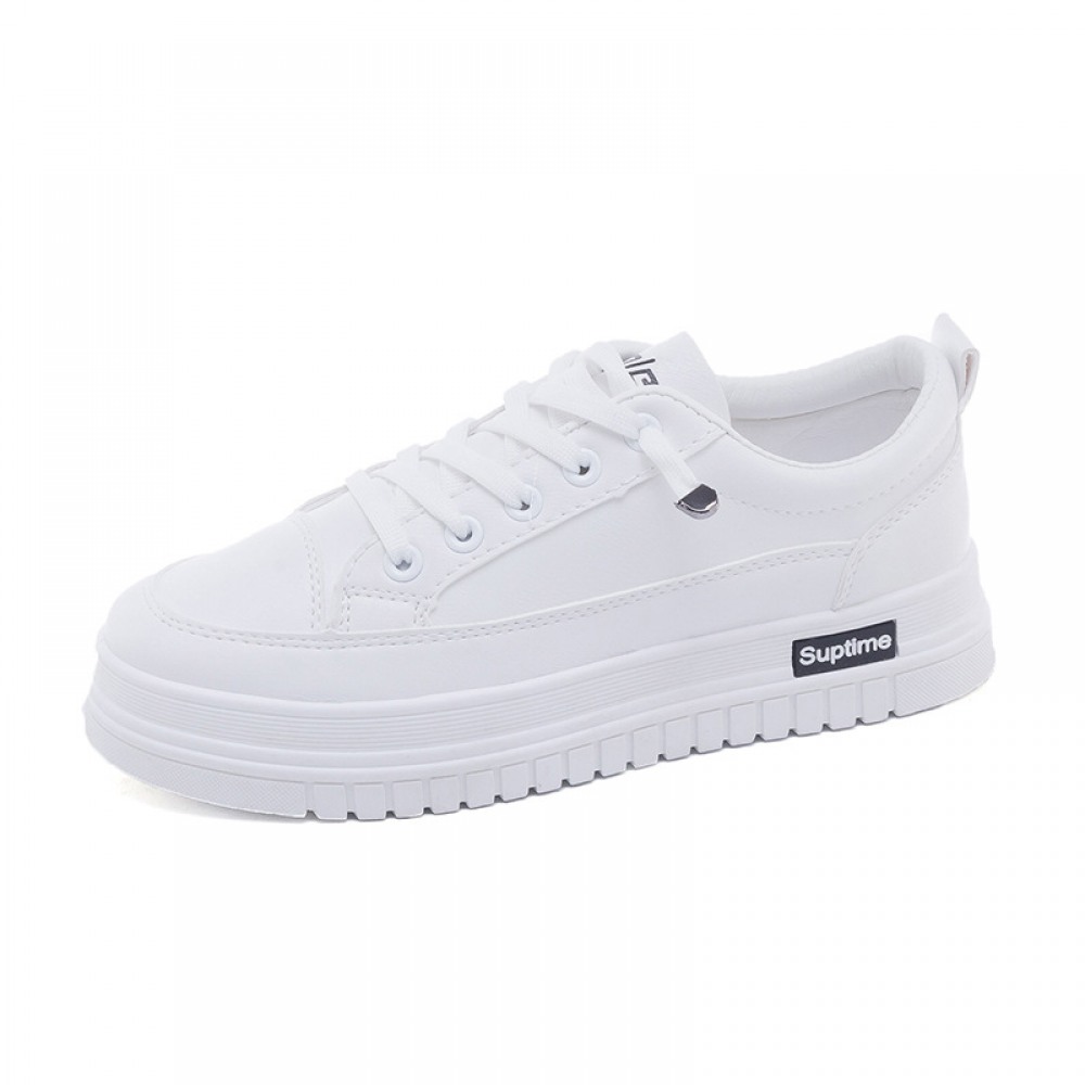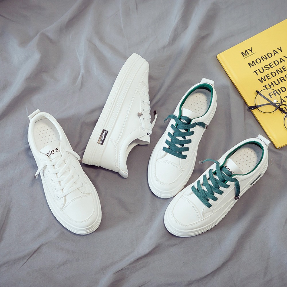 Basic White Shoes Women Spring New Student Flat Running Shoes Women's Lace-Up Platform Shoes