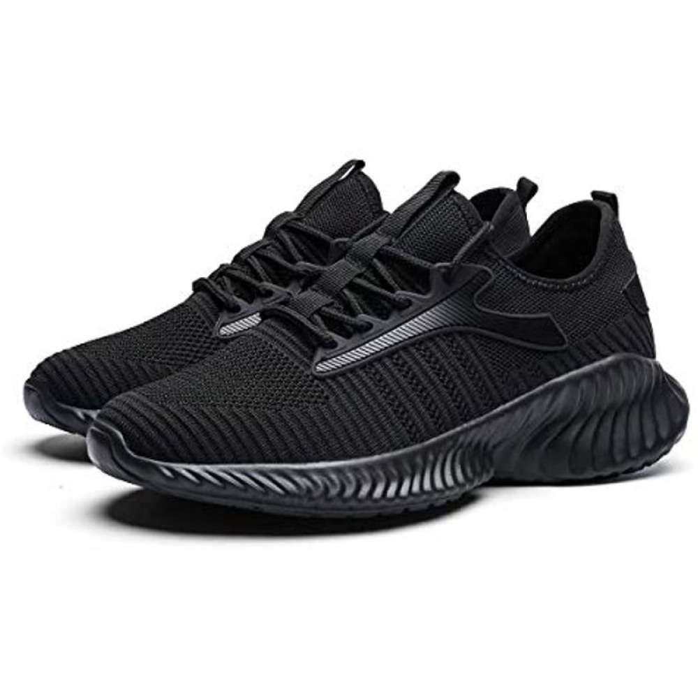 Men's Running Shoes Breathable Knit Slip On Sneakers Lightweight Athletic Casual Sports Shoes High Top All Black